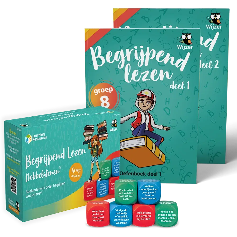 Met de Begrijpend Lezen Dobbelstenen kun jij op een leuke en effectieve manier oefenen met je kind.