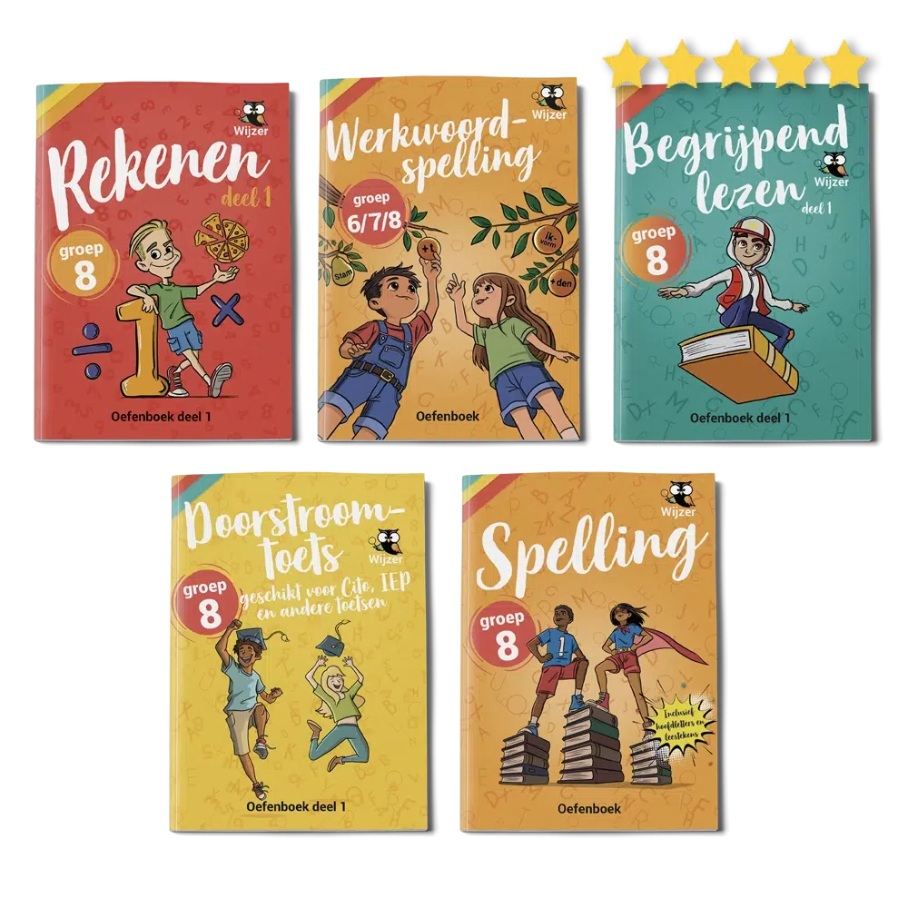 Kijk bij andere aanbieders goed naar wat je voor een bepaalde prijs krijgt en of je wel een echt boek krijgt toegestuurd. Bij Wijzer over de Basisschool krijg je echte (gedrukte) oefenboeken waarmee je vaak tot 4 x meer kunt oefenen dan bij andere aanbieders. Onze oefenboeken zijn de meest uitgebreide oefenboeken van Nederland. Bovendien zijn onze oefenboeken gemaakt door onderwijsexperts.