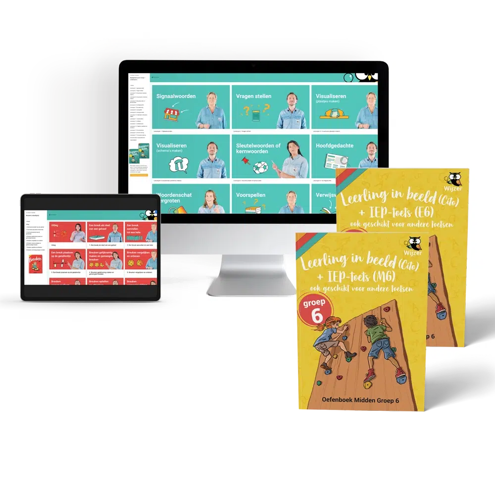 Ons oefenmateriaal is volledig afgestemd op de Leerling in beeld-toetsen (Cito) en de IEP-toetsen. Zo behaalt jouw kind het beste niveau, met slechts 15 minuten oefenen per dag.