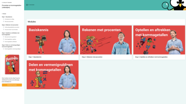 Videobijles Rekenen Groep 7 bestaat in totaal uit 62 lessen, verdeeld over de volgende modules: